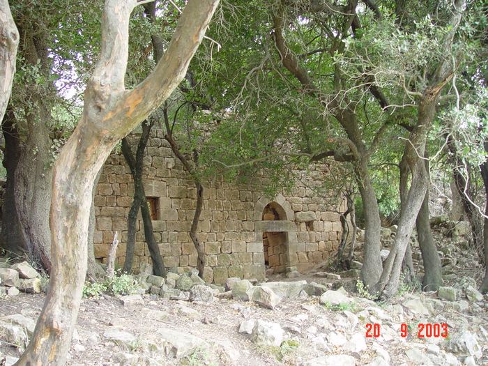 [4] _ الصلبان لا تكاد ترى، أتلفت قصداً، لكن الساكف بقي سالمًا مرميًّاً أم الغرفة.