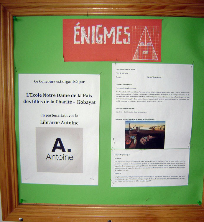 de la Charité Kobayat Lance son Concours « mes 5 énigmes en Collaboration avec