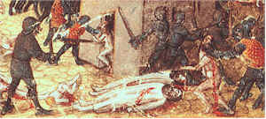 The crusader leaders knew that would be massacred if they were in the open when Kerbogha arrived, so they quickly agreed to Bohemond's plan. That same evening, 2-3 June, the crusaders stormed into the city through Firuz's tower. In the darkness, thousands of the city's residents, Christian and Muslim, were slaughtered. |