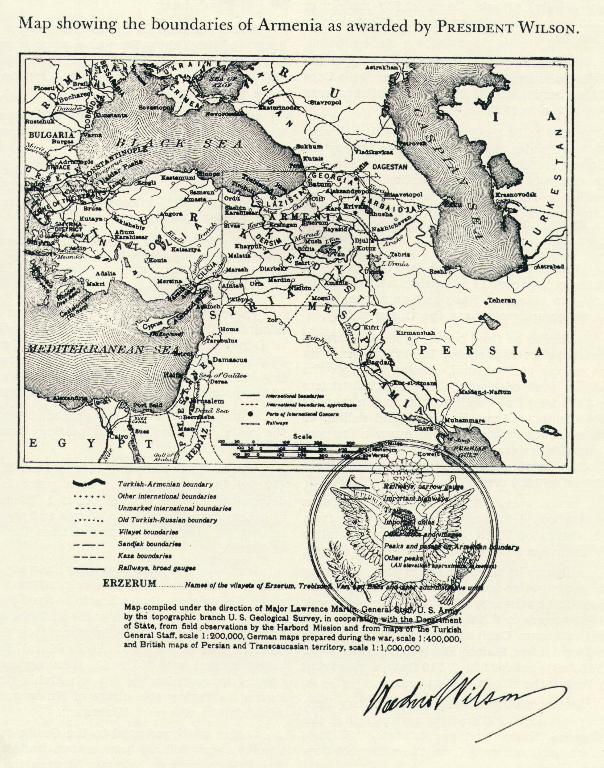 This is a map of Armenia's border with Turkey drawn by U.S. President Wilson as requested by the League of Nations, according to the terms of the Treaty of Sevres.